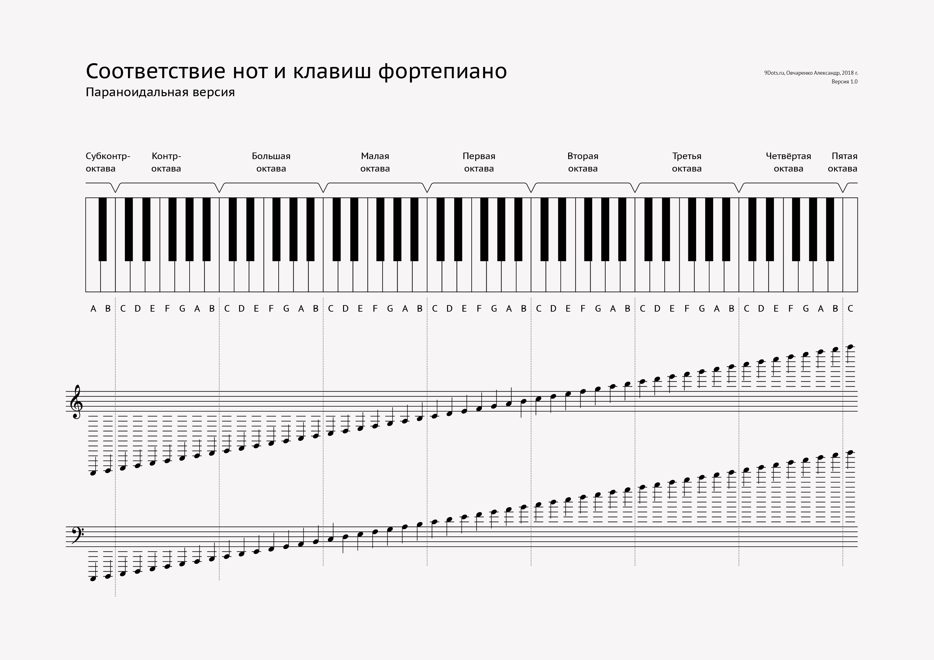Например: G4 - соль первой октавы, D3 - ре малой октавы.